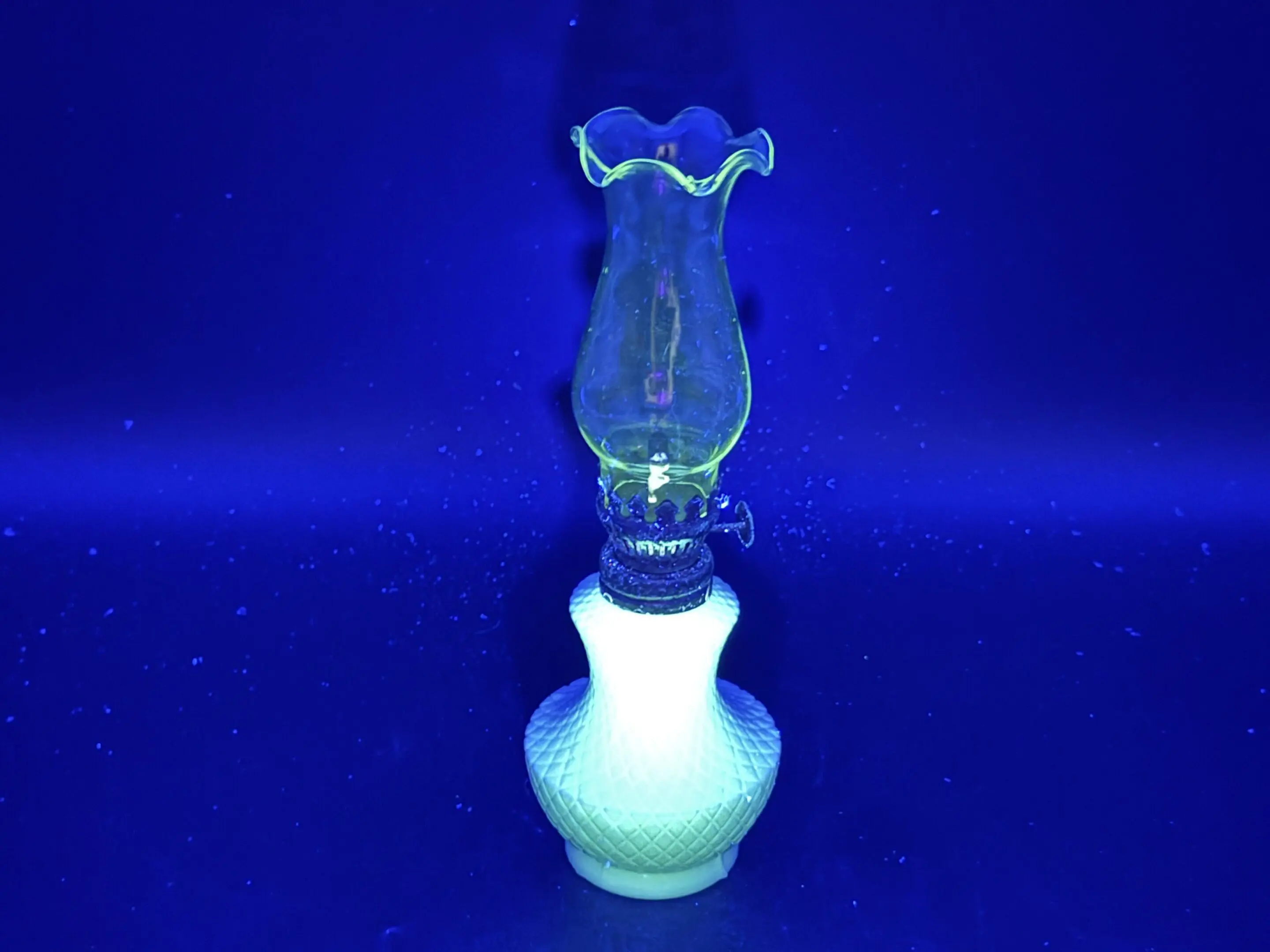 “UV Glow” White Milk Glass Kerosene Lamp