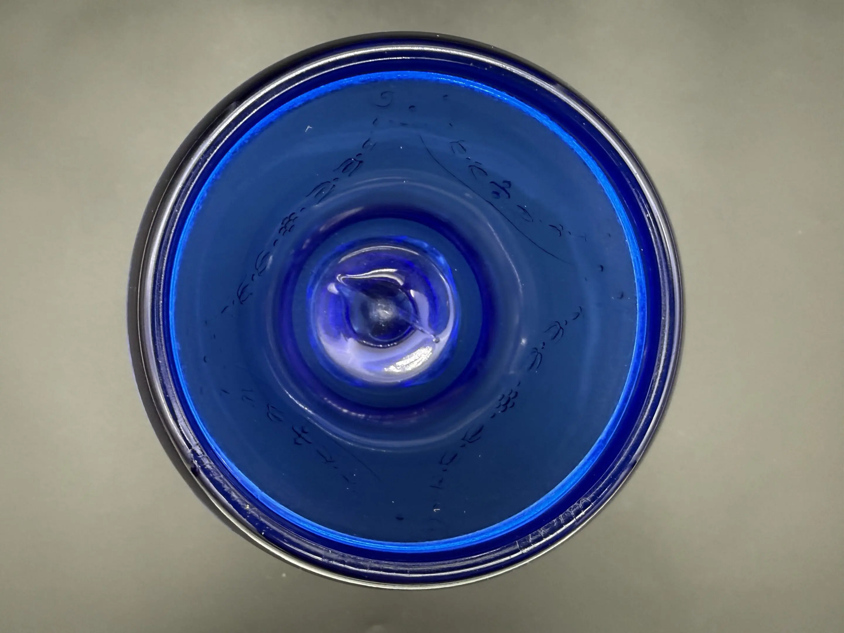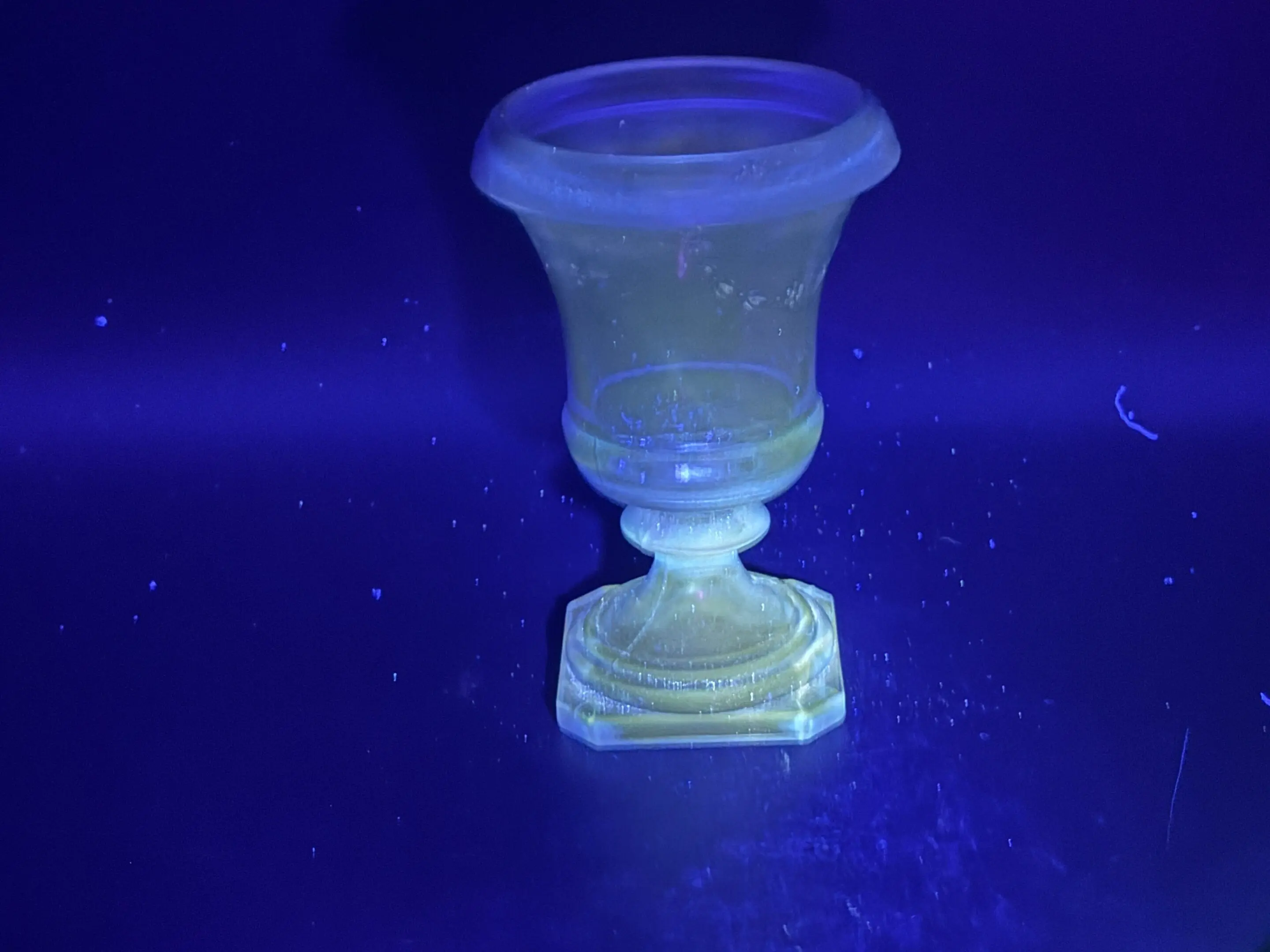 This beautiful vase stands 7.25″ tall and is 4.5″ wide at top, and has a beautiful glow under UV light.